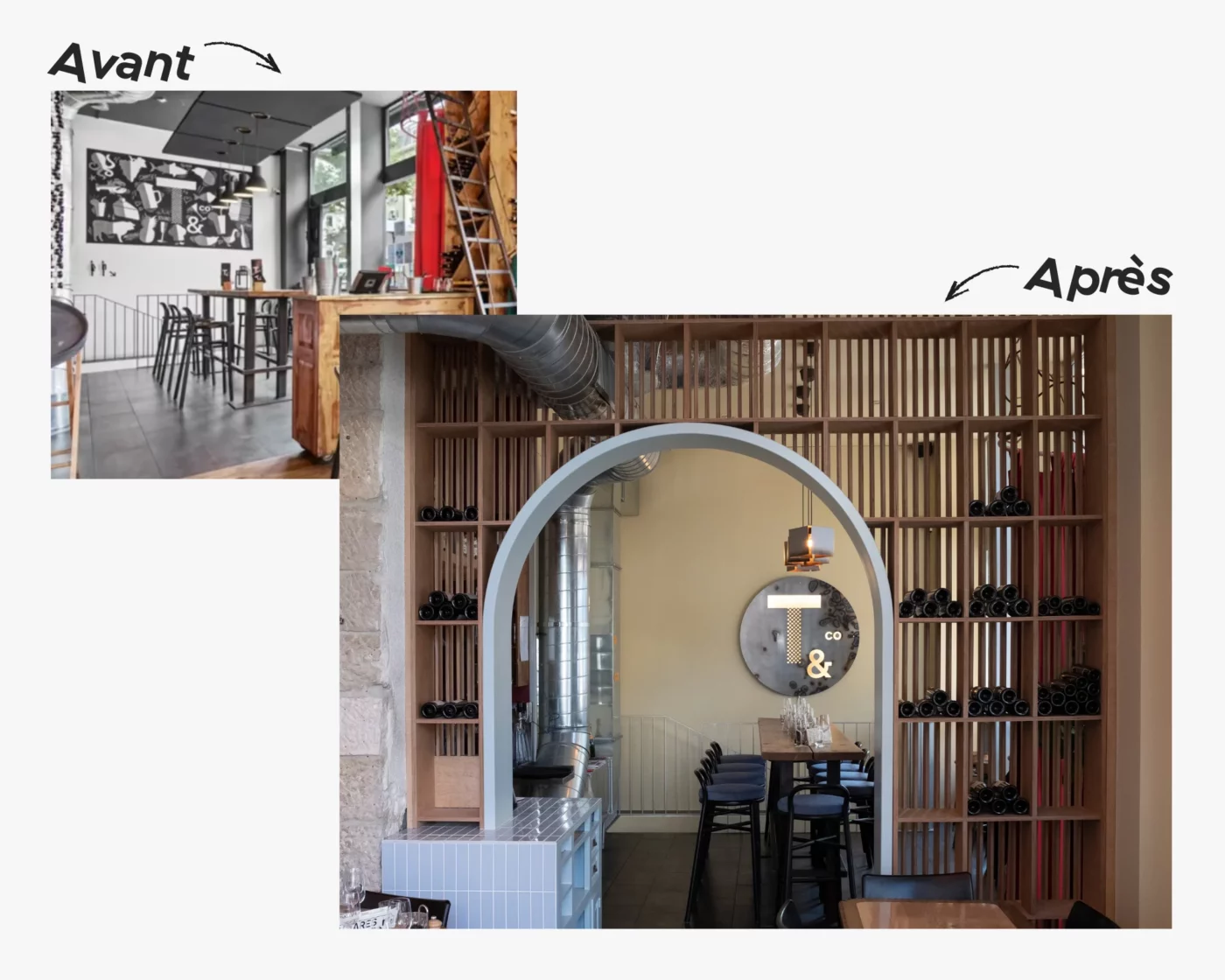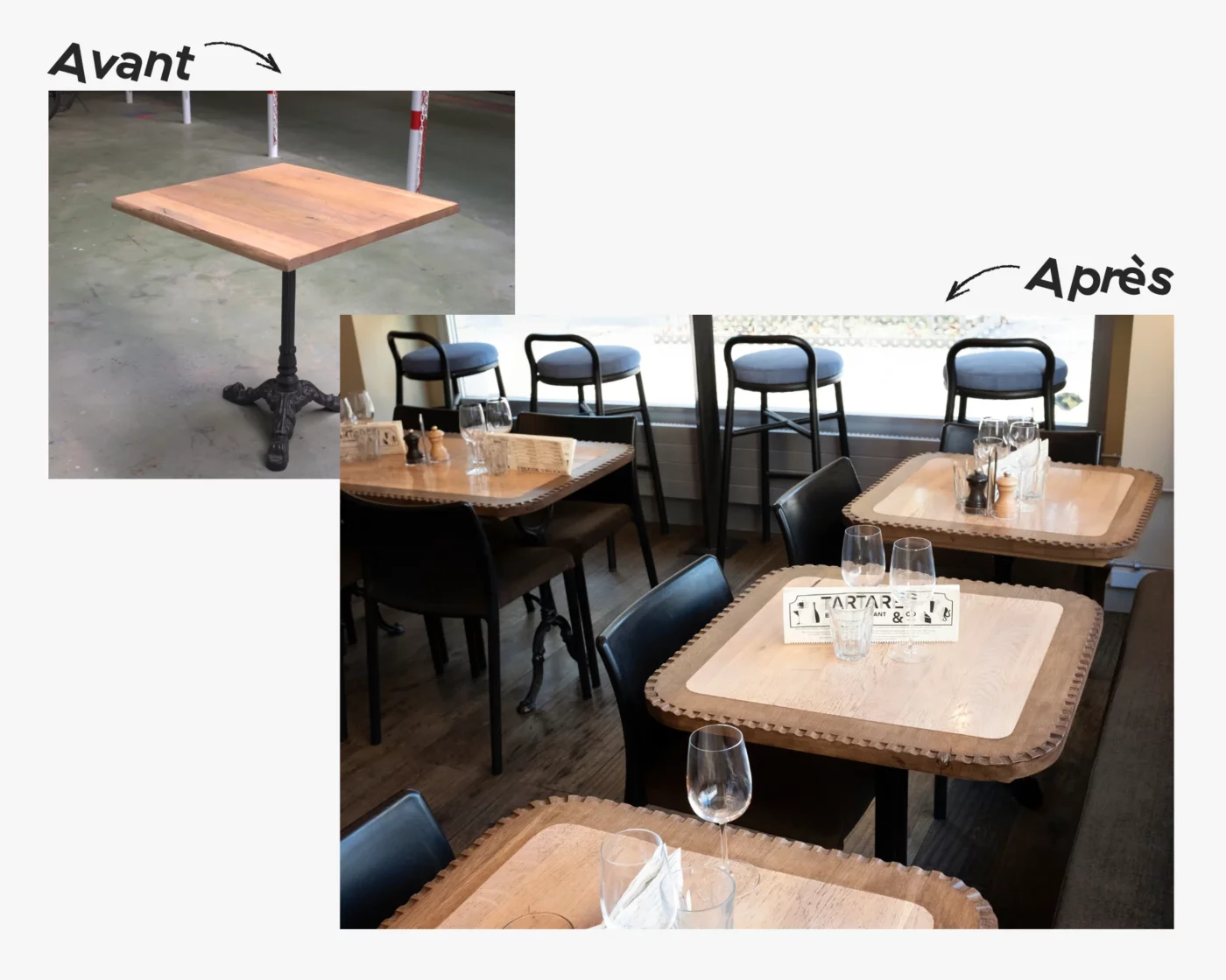Cette initiative a prouvé la viabilité de la méthode at28. L’équipe a transformé l’espace en rénovant les tables, les chaises, les tabourets et les luminaires existants, parvenant ainsi à conserver plus de 95% de la matière d’origine.