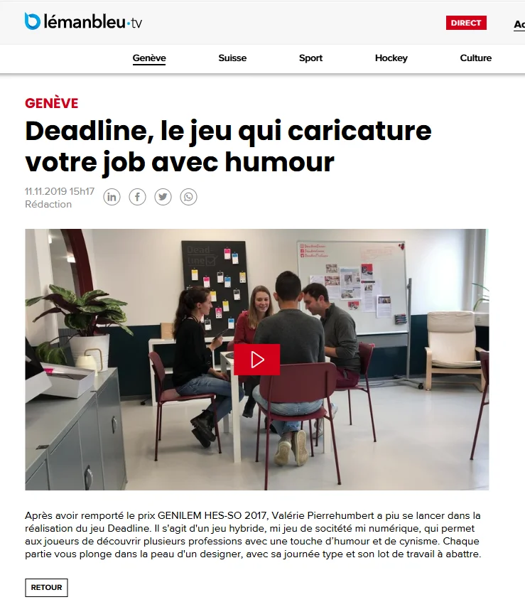 Deadline, le jeu qui caricature votre job avec humour Après avoir remporté le prix GENILEM HES-SO 2017, Valérie Pierrehumbert a […]